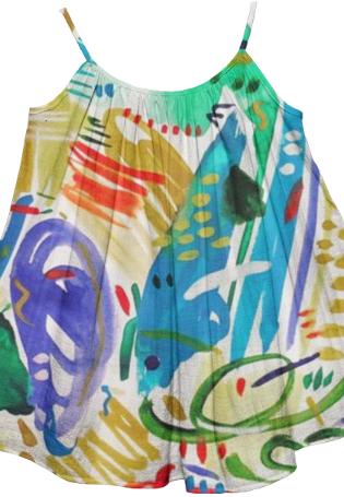 The kids tent dress features thin straps and a voluminous cut making it easy to wear for years.