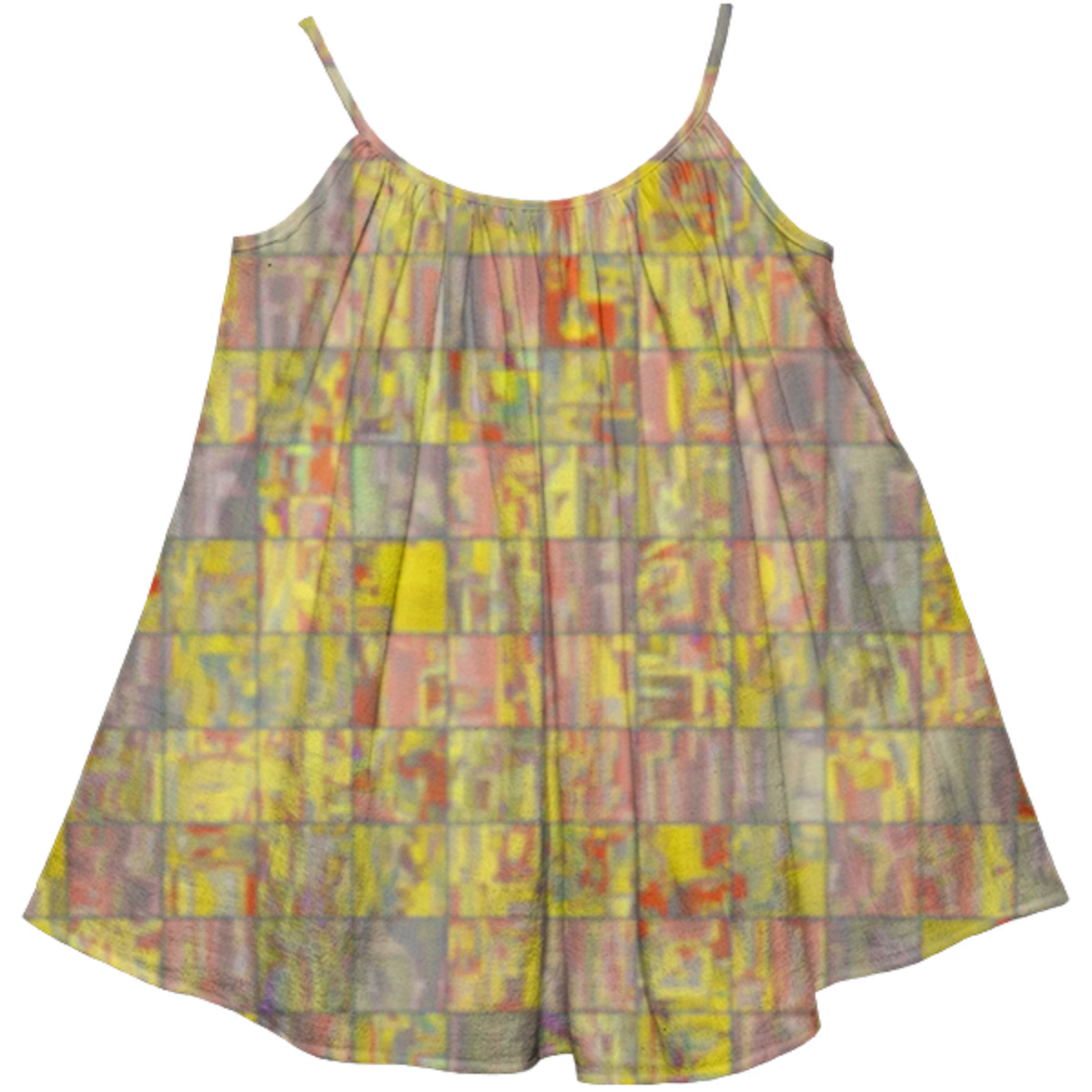 The kids tent dress features thin straps and a voluminous cut making it easy to wear for years.