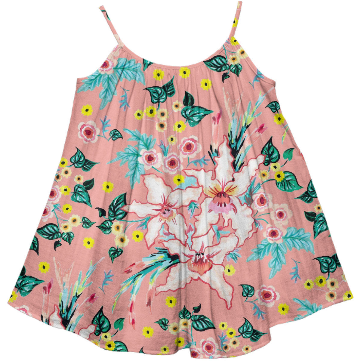 The kids tent dress features thin straps and a voluminous cut making it easy to wear for years.