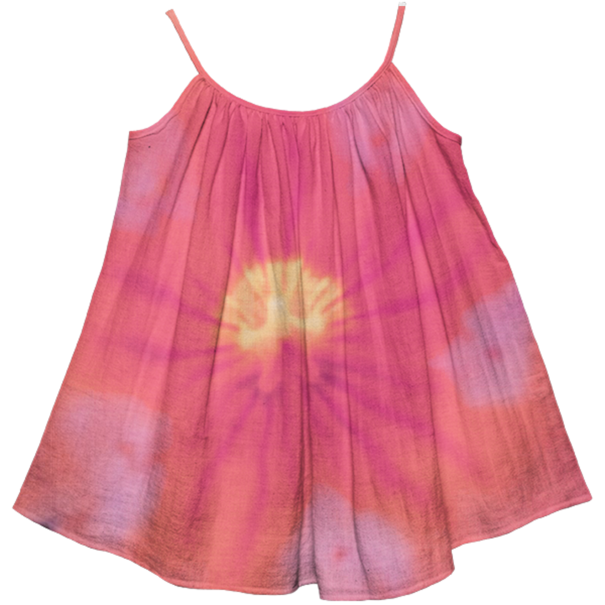 The kids tent dress features thin straps and a voluminous cut making it easy to wear for years.