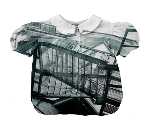 Sweet and simple button up kids blouse with peter pan collar and puff sleeves.