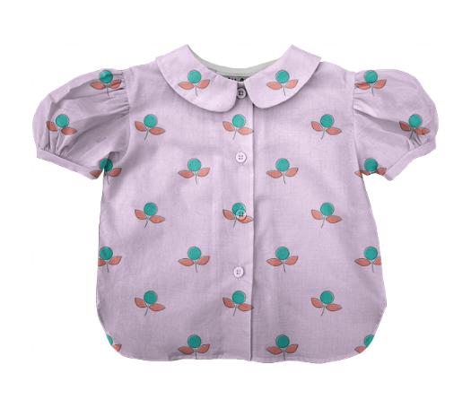Sweet and simple button up kids blouse with peter pan collar and puff sleeves.