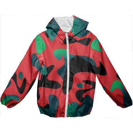 Kids rain jacket with a hood elastic sleeve cuffs & hem to keep out the rain and side pockets.