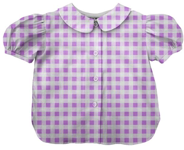 Sweet and simple button up kids blouse with peter pan collar and puff sleeves.
