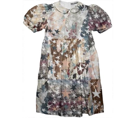 This kids party dress features a peter pan collar puff sleeves and empire waist with back bow tie. Easy to get on and off with center back plastic buttons.