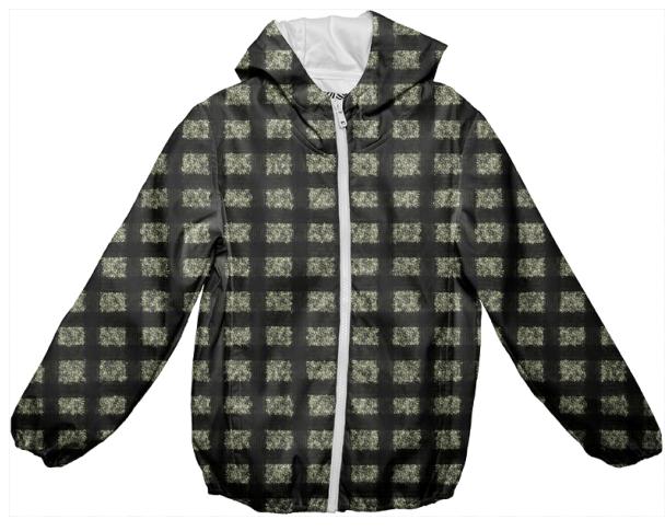 Kids rain jacket with a hood elastic sleeve cuffs & hem to keep out the rain and side pockets.