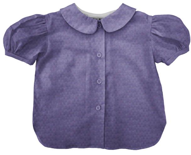 Sweet and simple button up kids blouse with peter pan collar and puff sleeves.