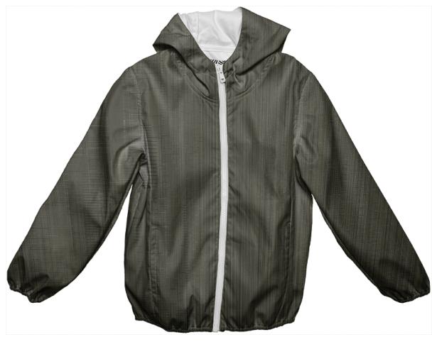 Kids rain jacket with a hood elastic sleeve cuffs & hem to keep out the rain and side pockets.
