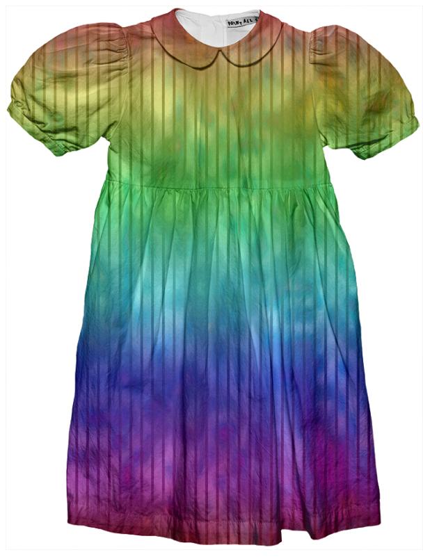 This kids party dress features a peter pan collar puff sleeves and empire waist with back bow tie. Easy to get on and off with center back plastic buttons.
