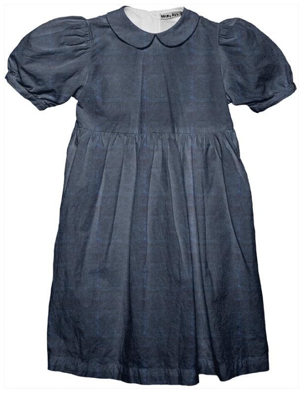 This kids party dress features a peter pan collar puff sleeves and empire waist with back bow tie. Easy to get on and off with center back plastic buttons.