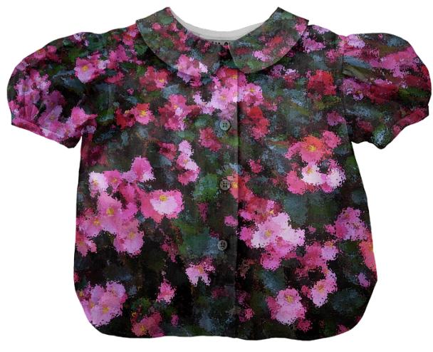 Sweet and simple button up kids blouse with peter pan collar and puff sleeves.