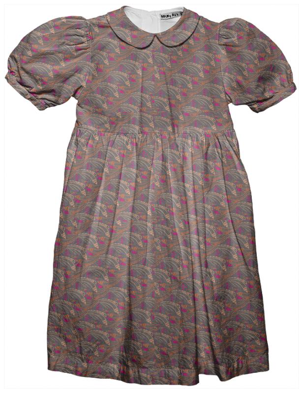 This kids party dress features a peter pan collar puff sleeves and empire waist with back bow tie. Easy to get on and off with center back plastic buttons.