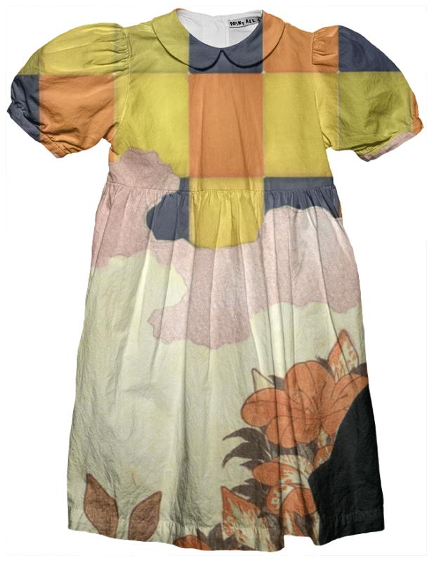This kids party dress features a peter pan collar puff sleeves and empire waist with back bow tie. Easy to get on and off with center back plastic buttons.