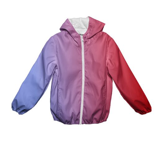 Kids rain jacket with a hood elastic sleeve cuffs & hem to keep out the rain and side pockets.
