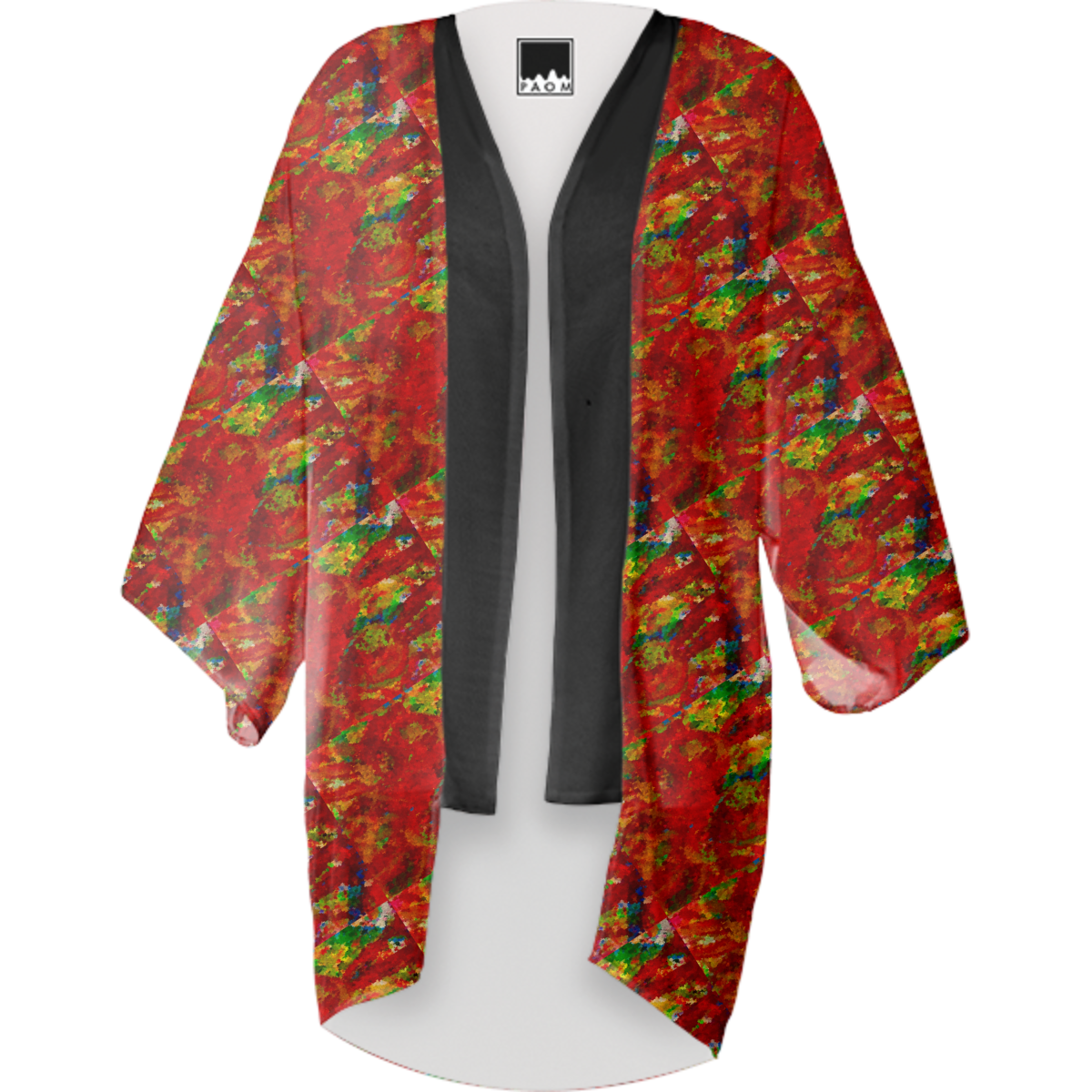 Flowy chiffon kimono falls nicely at mid thigh. Great for layering or using as a beach cover up.