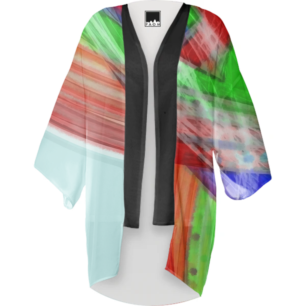 Flowy chiffon kimono falls nicely at mid thigh. Great for layering or using as a beach cover up.