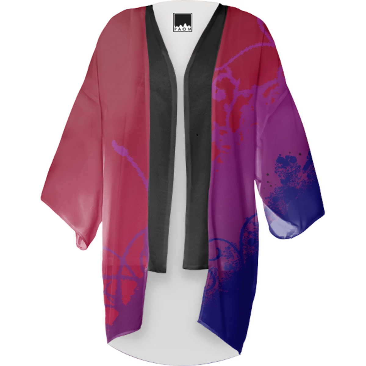 Flowy chiffon kimono falls nicely at mid thigh. Great for layering or using as a beach cover up.