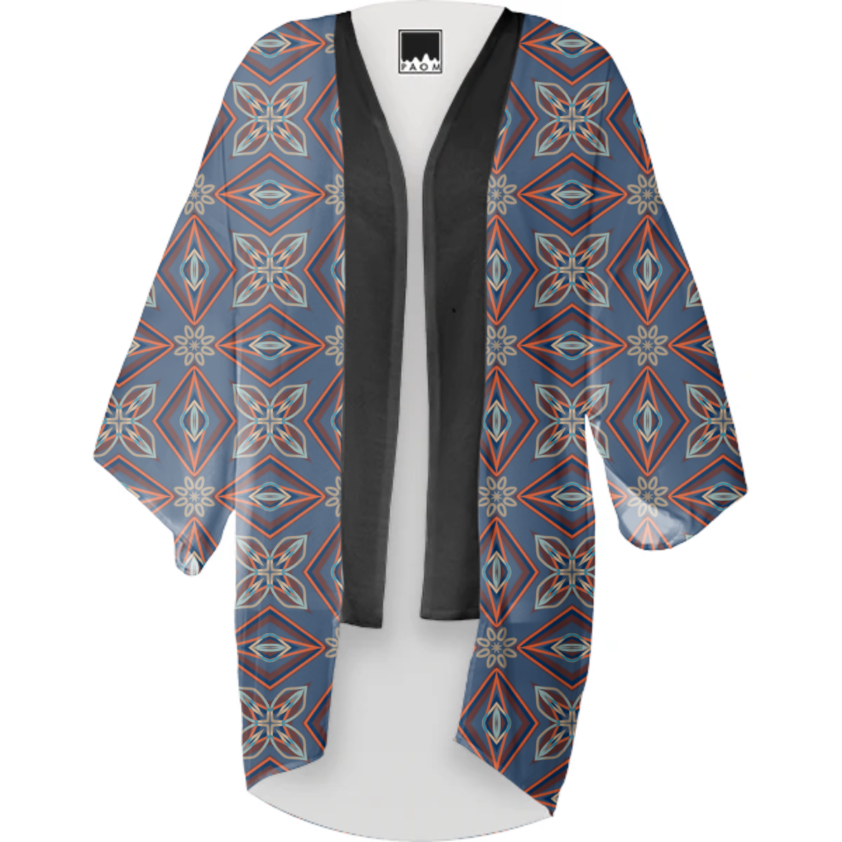 Flowy chiffon kimono falls nicely at mid thigh. Great for layering or using as a beach cover up.