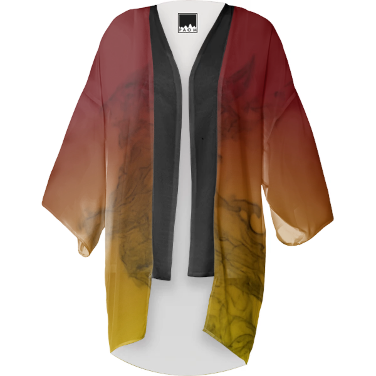 Flowy chiffon kimono falls nicely at mid thigh. Great for layering or using as a beach cover up.