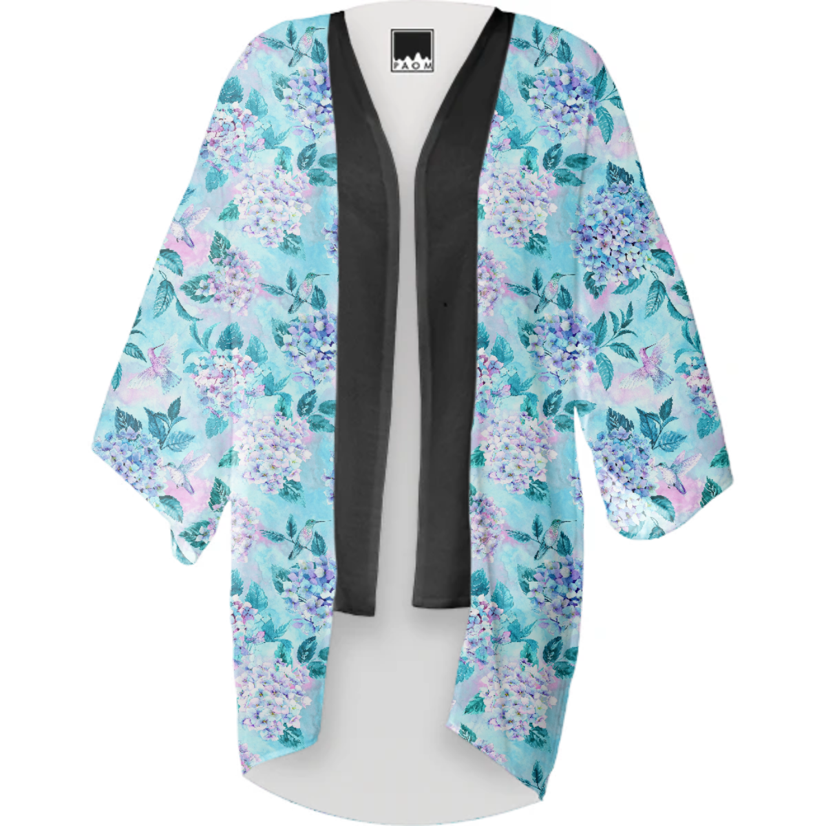 Flowy chiffon kimono falls nicely at mid thigh. Great for layering or using as a beach cover up.