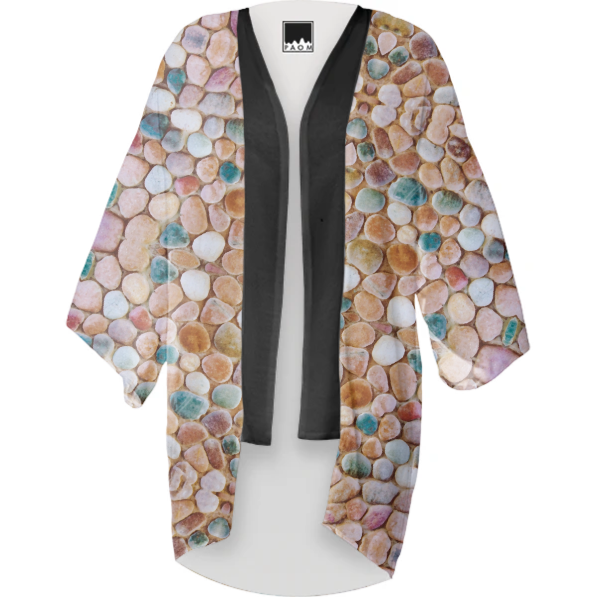 Flowy chiffon kimono falls nicely at mid thigh. Great for layering or using as a beach cover up.
