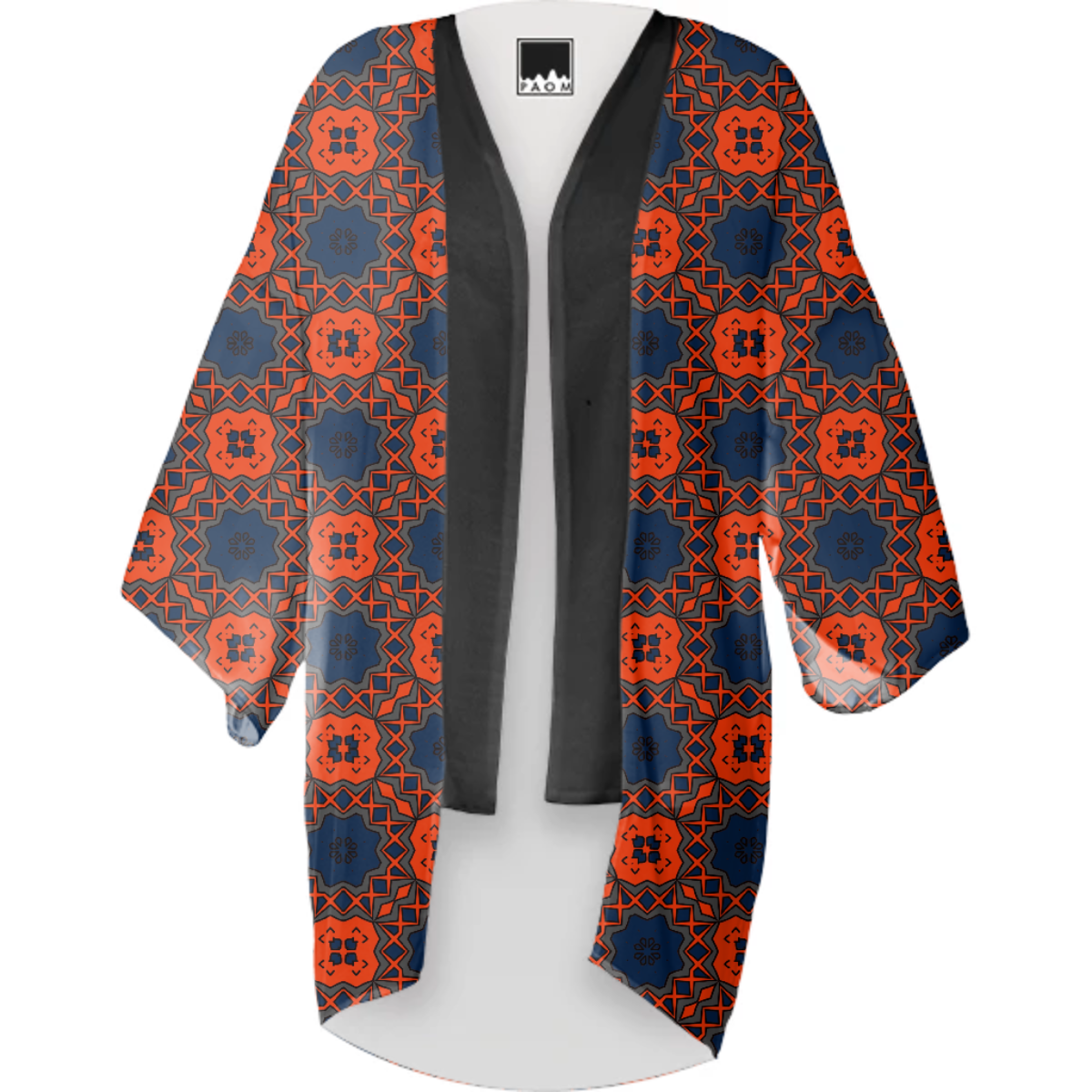 Flowy chiffon kimono falls nicely at mid thigh. Great for layering or using as a beach cover up.