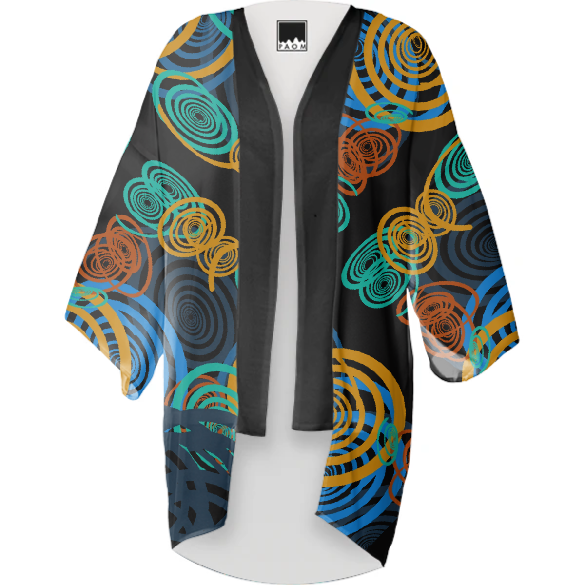 Flowy chiffon kimono falls nicely at mid thigh. Great for layering or using as a beach cover up.