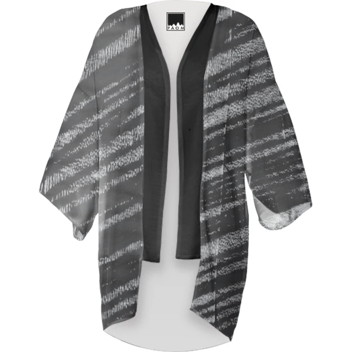 Flowy chiffon kimono falls nicely at mid thigh. Great for layering or using as a beach cover up.