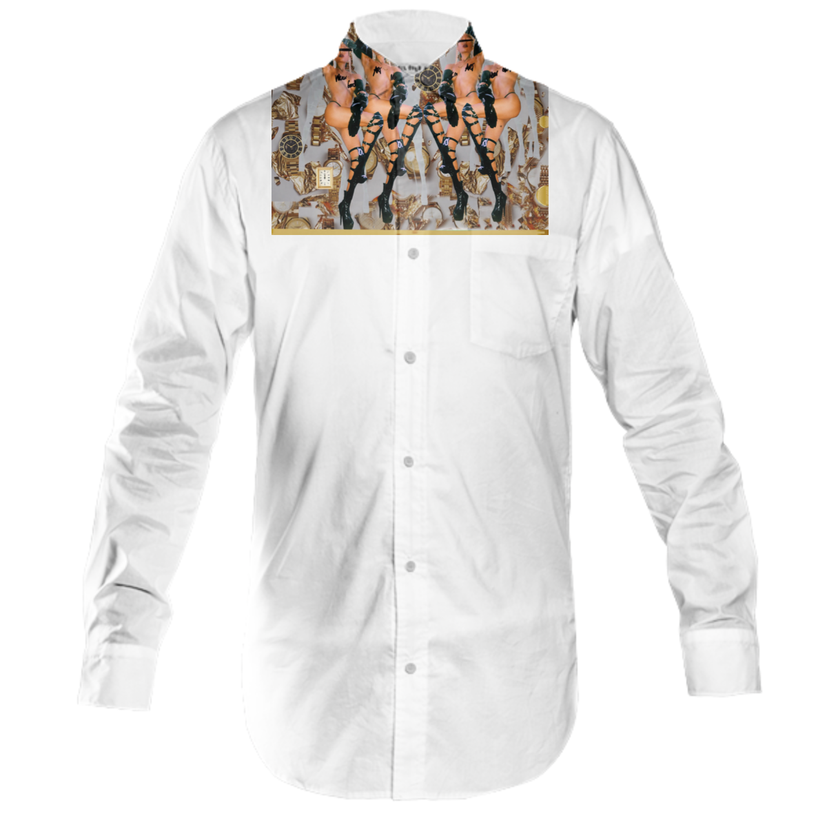 The uploaded file will be printed on the entire front and be mirrored on the back. Because of our cut and sew process some print elements on pockets seams and sleeves might not match up. For best results please upload a PNG or JPG with RGB color profile and dimensions of at least 35 inches width by 20 inches length. DPI can be as low as 72.