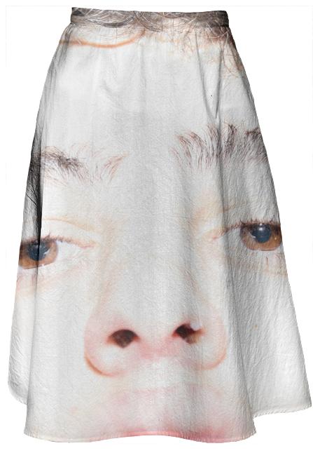 Knee length a-line skirt with a tailored waistband and invisible side seam zipper.