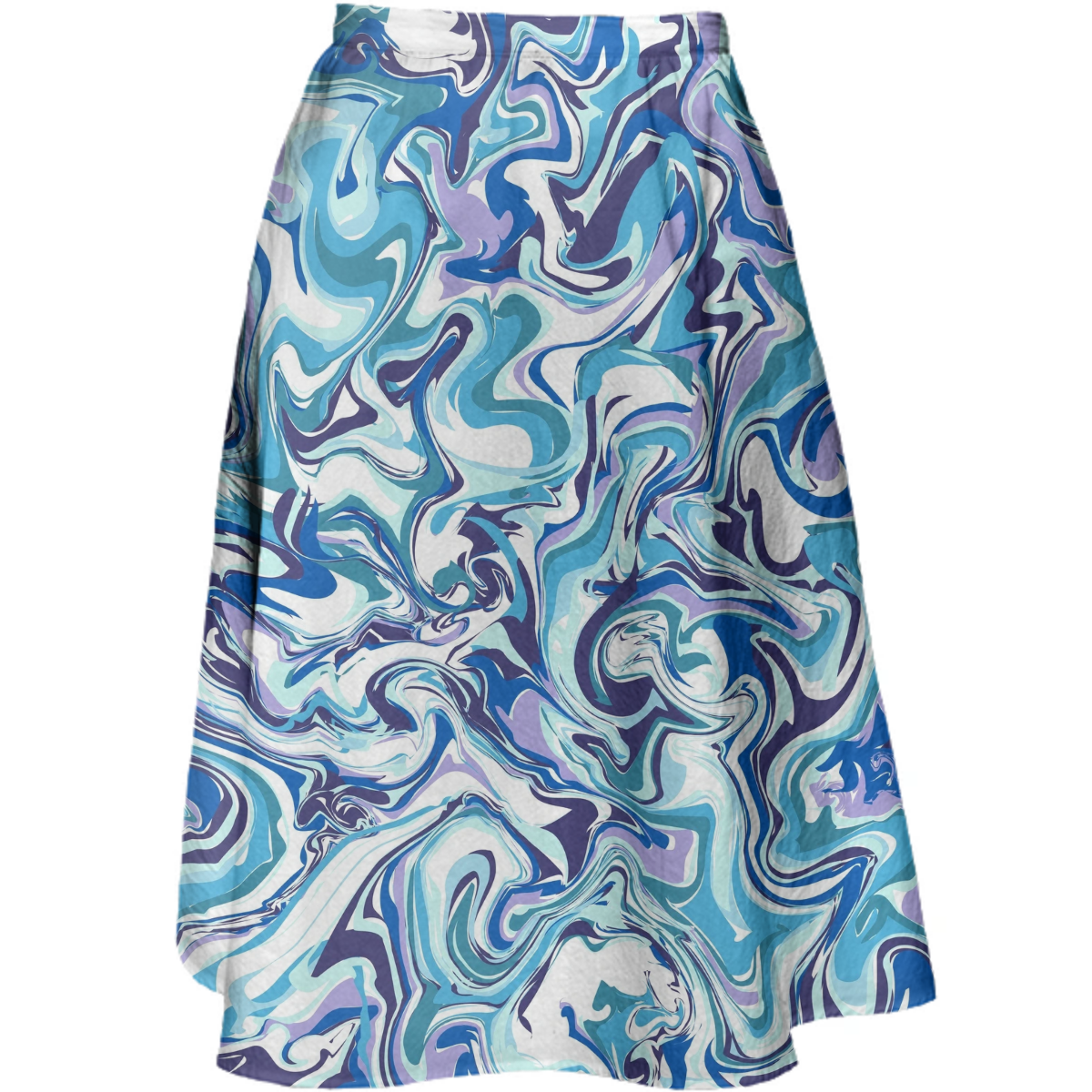 Knee length a-line skirt with a tailored waistband and invisible side seam zipper.