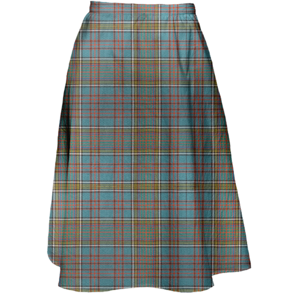Knee length a-line skirt with a tailored waistband and invisible side seam zipper.