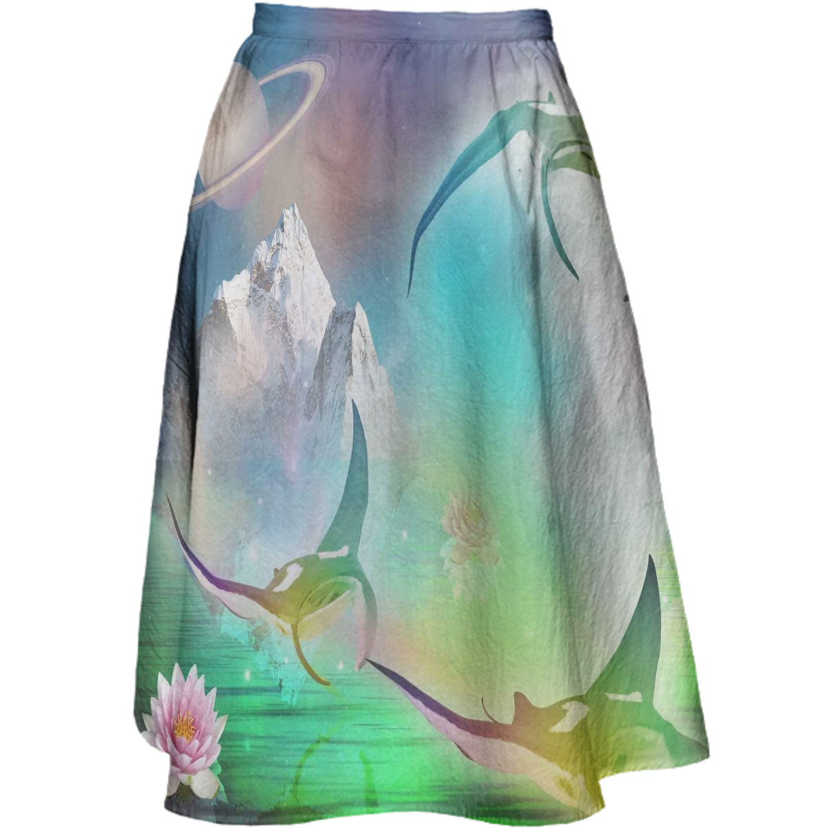 Knee length a-line skirt with a tailored waistband and invisible side seam zipper.