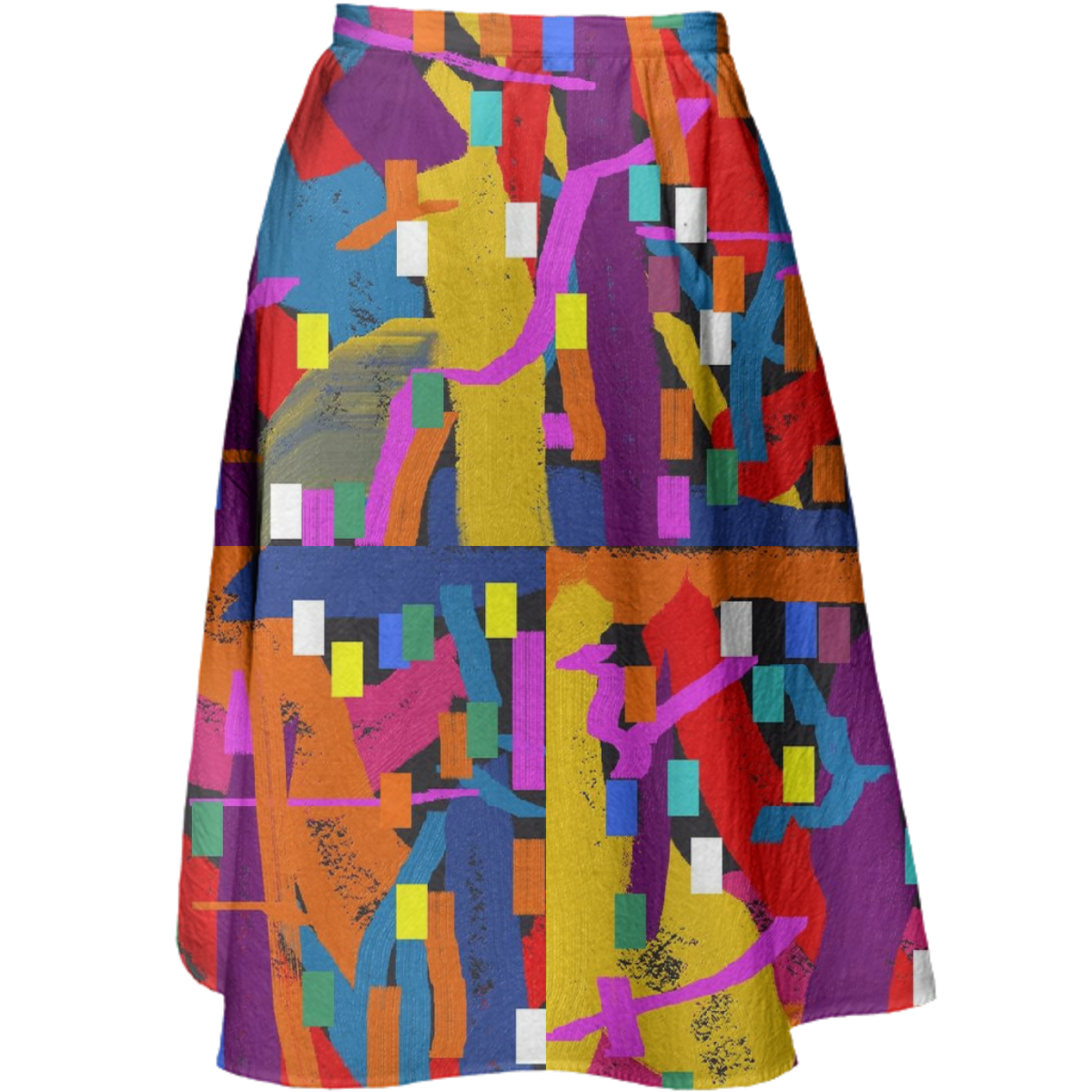 Knee length a-line skirt with a tailored waistband and invisible side seam zipper.