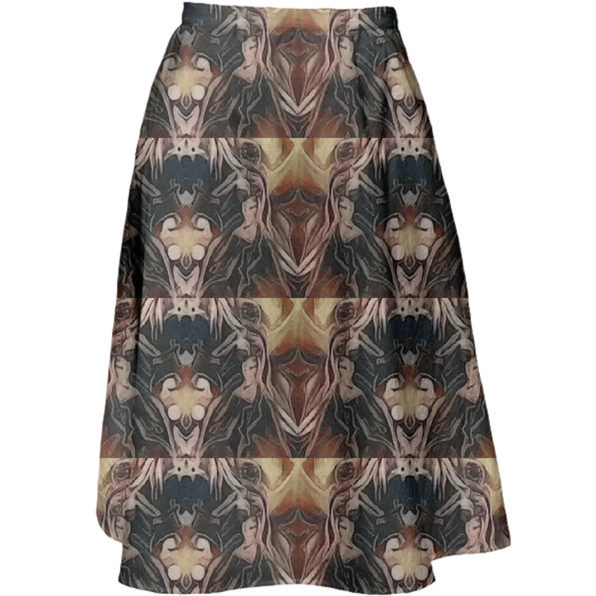 Knee length a-line skirt with a tailored waistband and invisible side seam zipper.