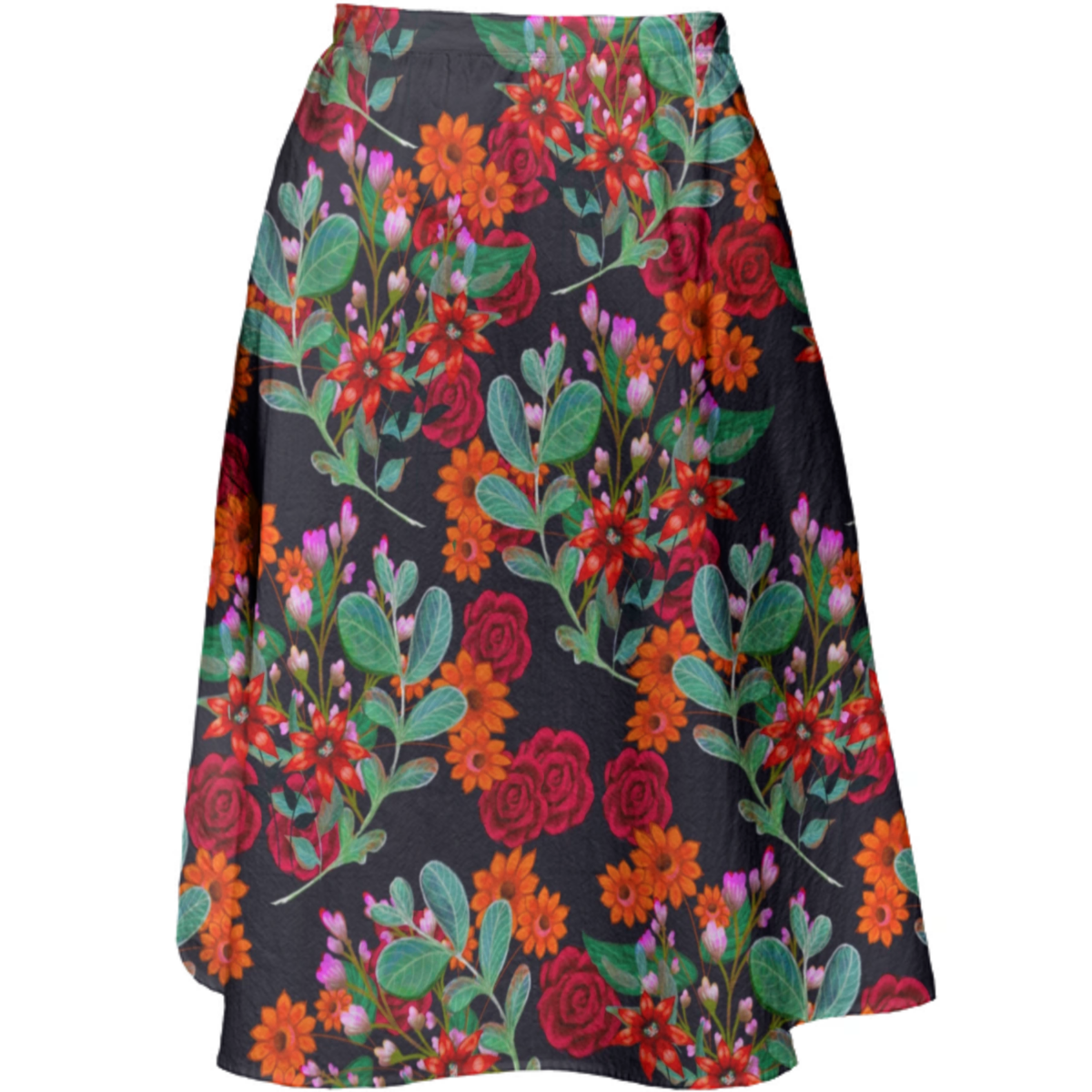 Knee length a-line skirt with a tailored waistband and invisible side seam zipper.