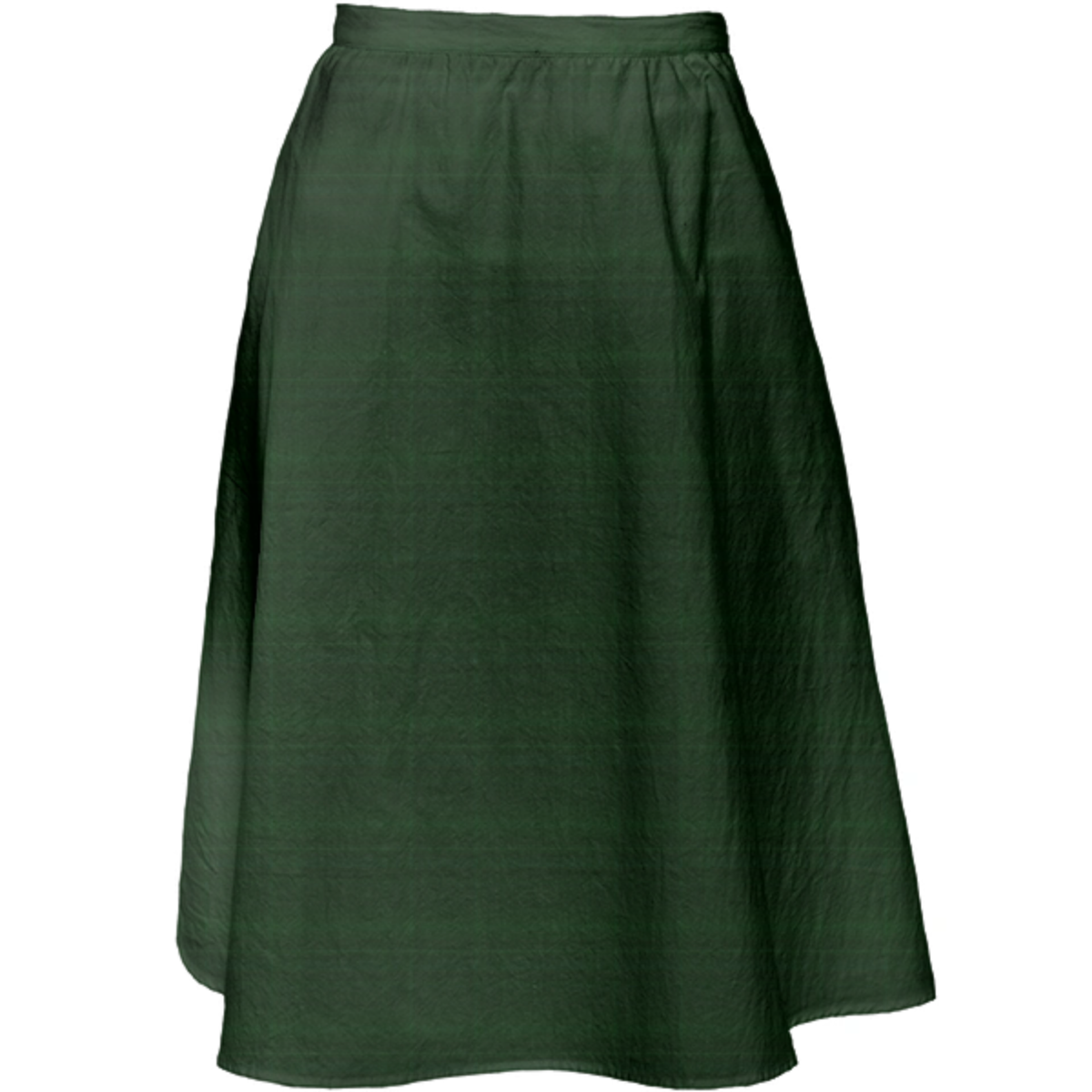 Knee length a-line skirt with a tailored waistband and invisible side seam zipper.