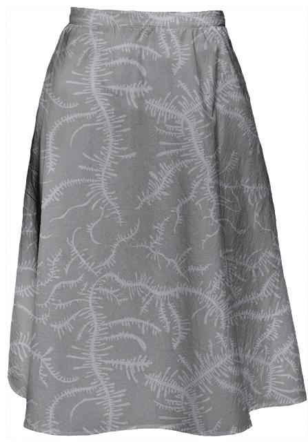 Knee length a-line skirt with a tailored waistband and invisible side seam zipper.
