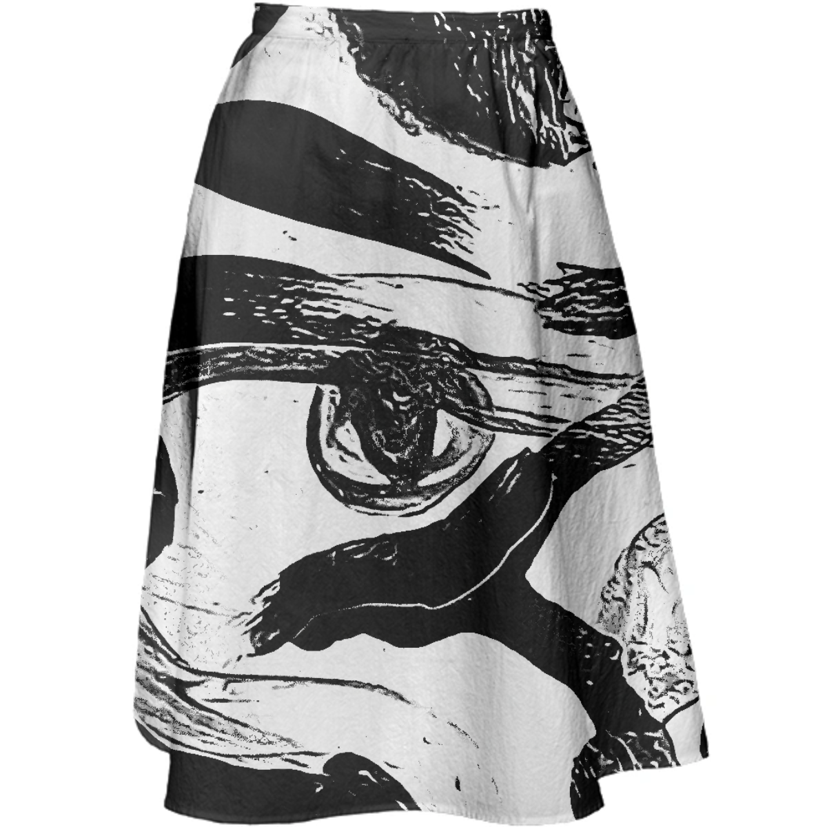 Knee length a-line skirt with a tailored waistband and invisible side seam zipper.