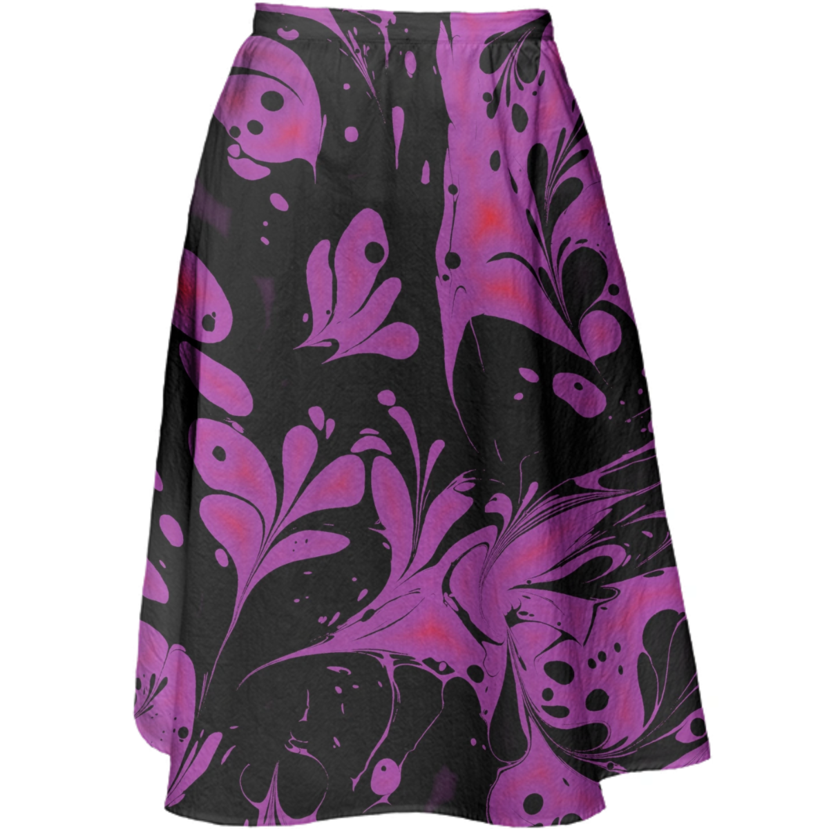 Knee length a-line skirt with a tailored waistband and invisible side seam zipper.