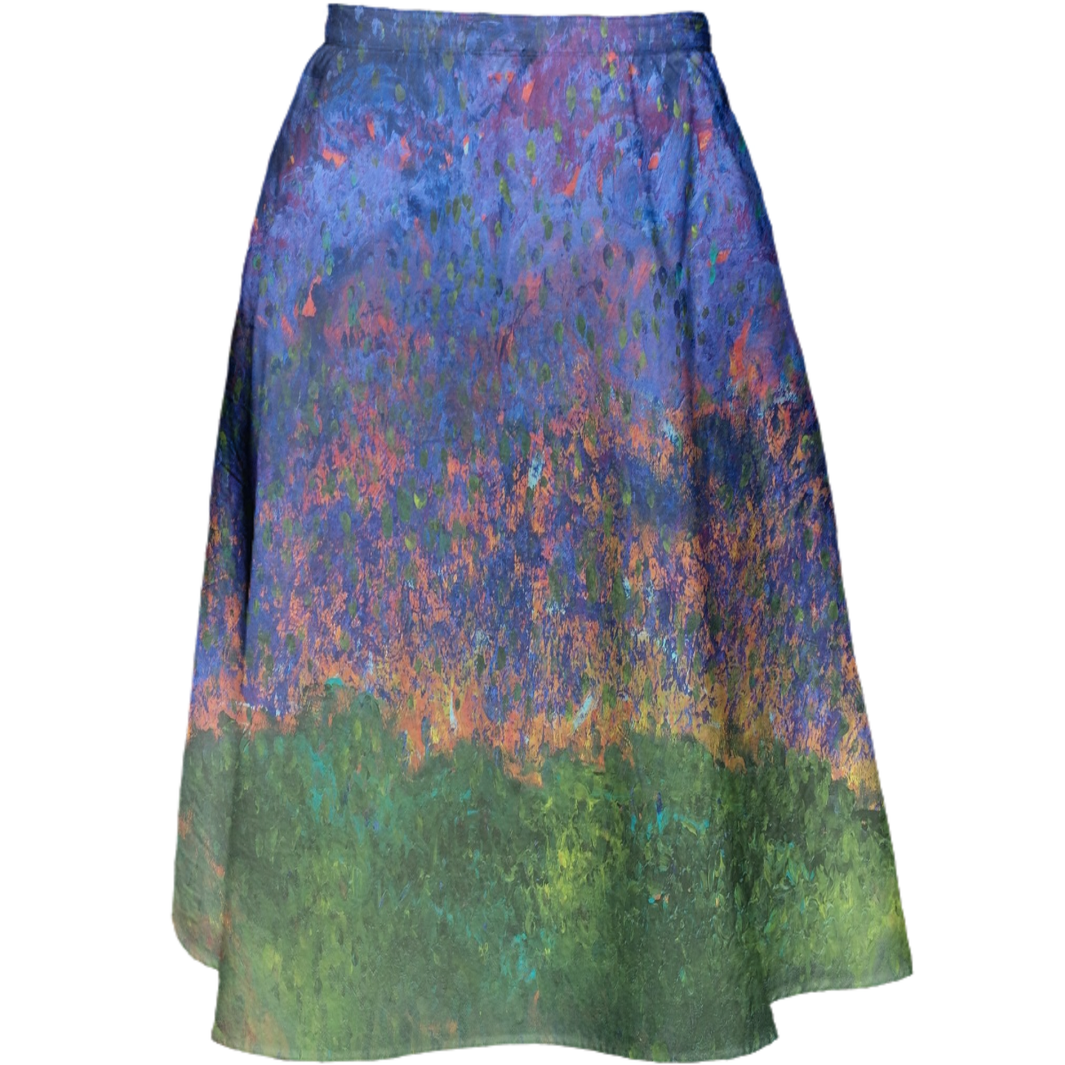 Knee length a-line skirt with a tailored waistband and invisible side seam zipper.