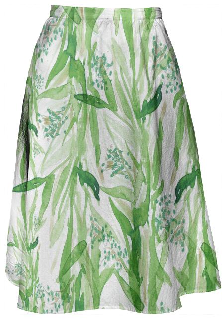 Knee length a-line skirt with a tailored waistband and invisible side seam zipper.