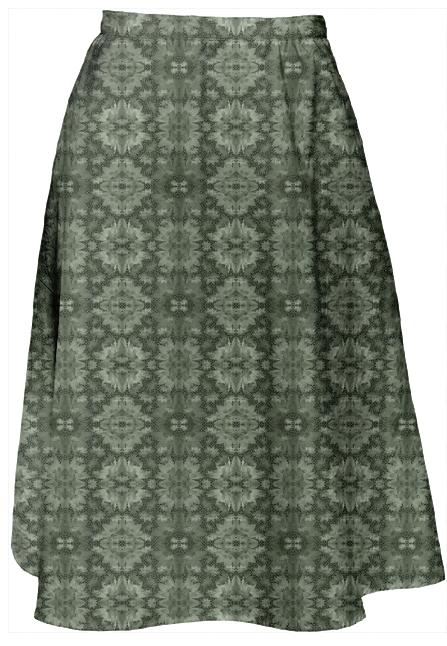 Knee length a-line skirt with a tailored waistband and invisible side seam zipper.