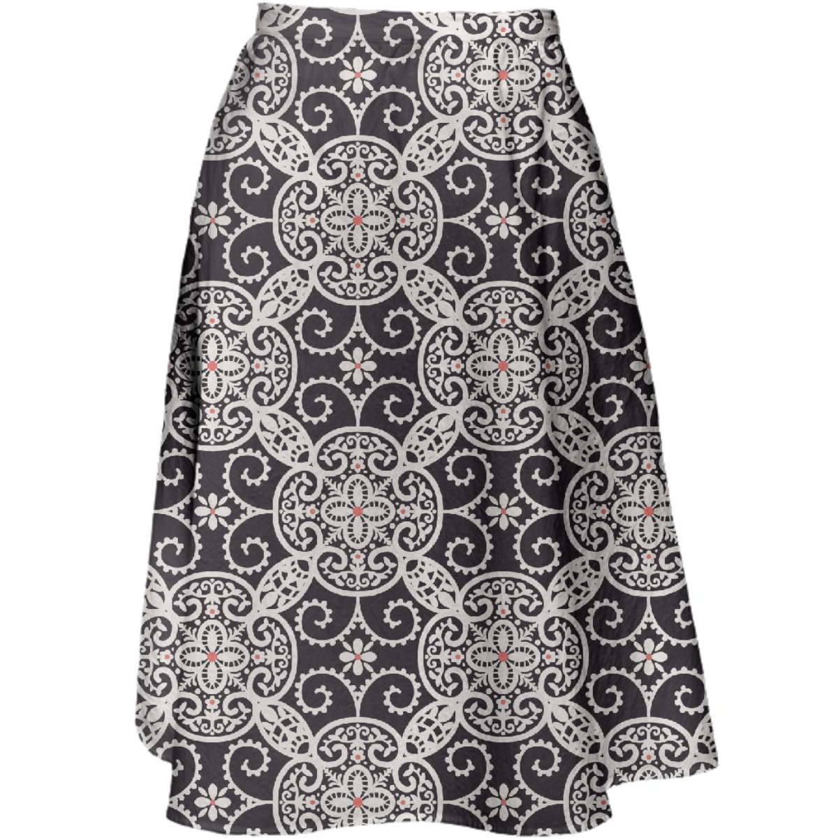 Knee length a-line skirt with a tailored waistband and invisible side seam zipper.