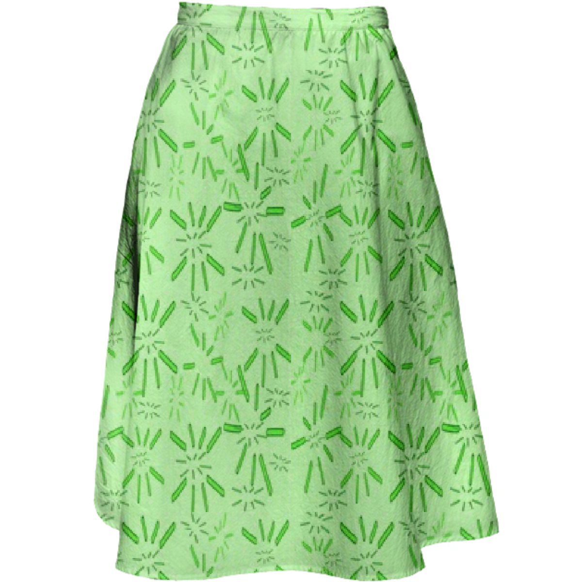 Knee length a-line skirt with a tailored waistband and invisible side seam zipper.