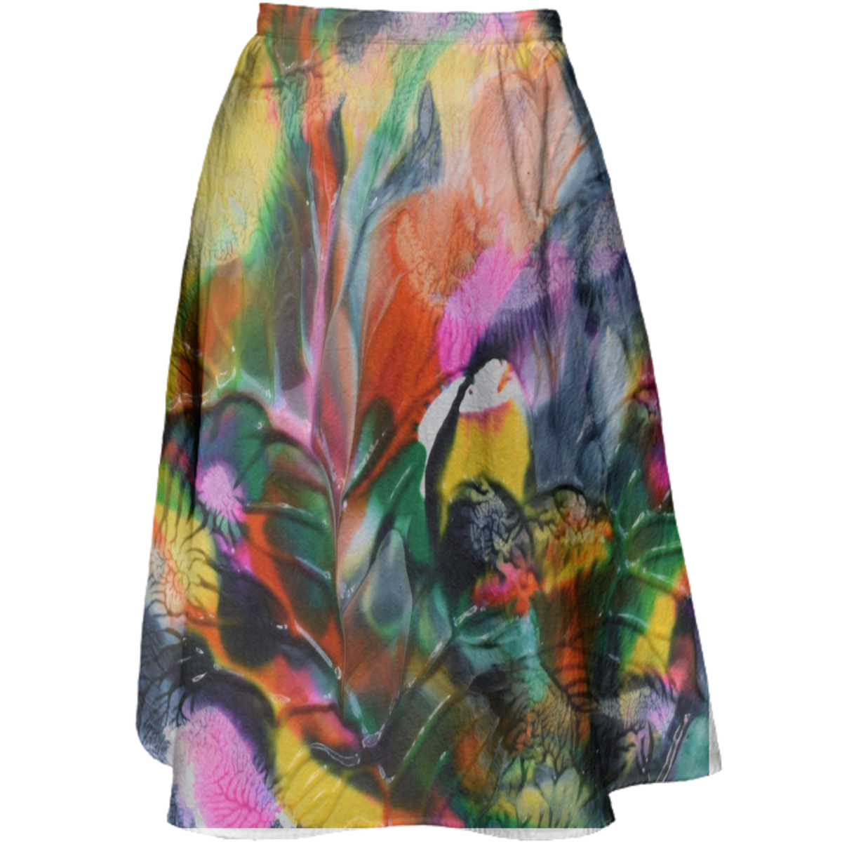 Knee length a-line skirt with a tailored waistband and invisible side seam zipper.