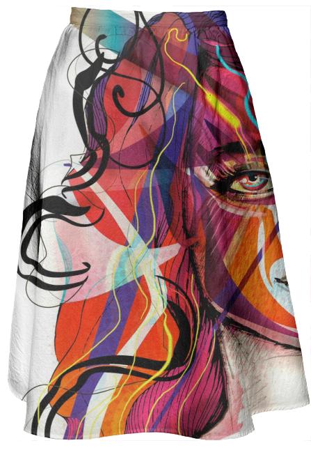 Knee length a-line skirt with a tailored waistband and invisible side seam zipper.