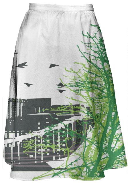 Knee length a-line skirt with a tailored waistband and invisible side seam zipper.