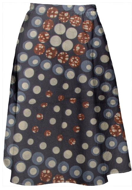 Knee length a-line skirt with a tailored waistband and invisible side seam zipper.