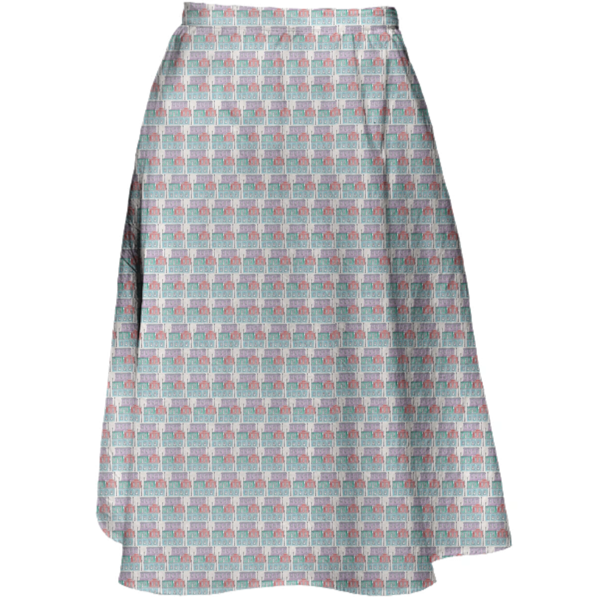 Knee length a-line skirt with a tailored waistband and invisible side seam zipper.